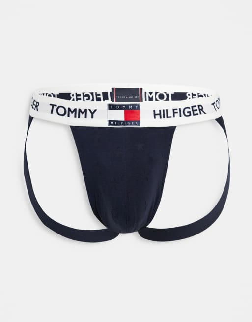 Tommy Hilfiger jock strap with burnout stars and flag logo waistband in navy