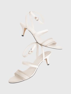 Leather Webbing Mid Heel Sandals Beige Tommy Hilfiger