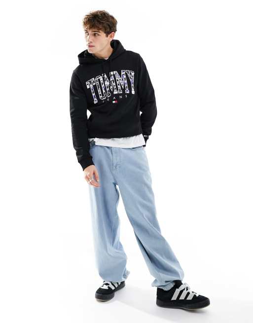 Tommy jeans camo hoodie clearance, Tommy Jeans regular camo new varsity logo hoodie in black clearance