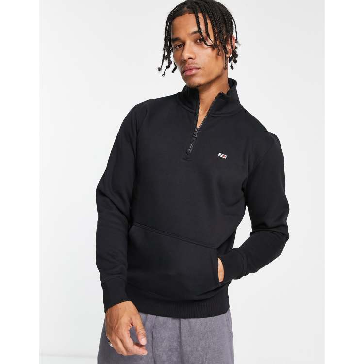 Tommy Jeans flag logo fleece half zip sweatshirt in black