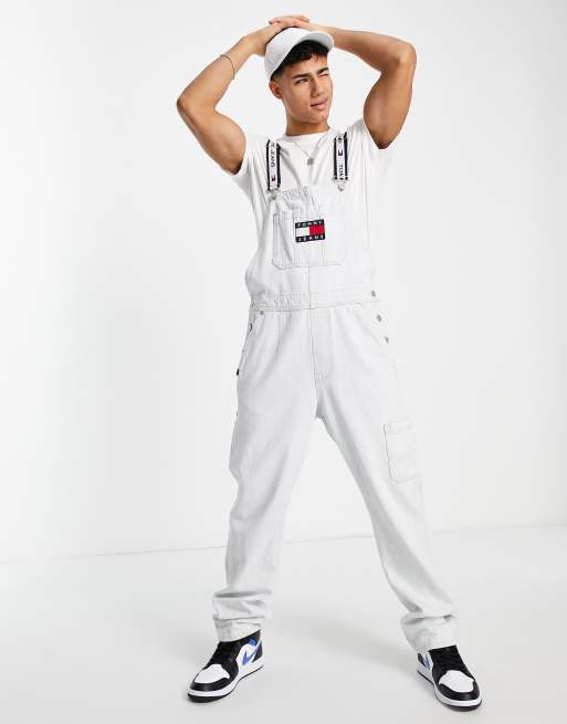 Tommy Jeans tapered fit denim overalls in bleach wash