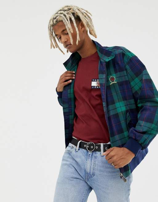 Tommy Jeans 6.0 limited capsule harrington jacket in green and navy plaid with crest back logo