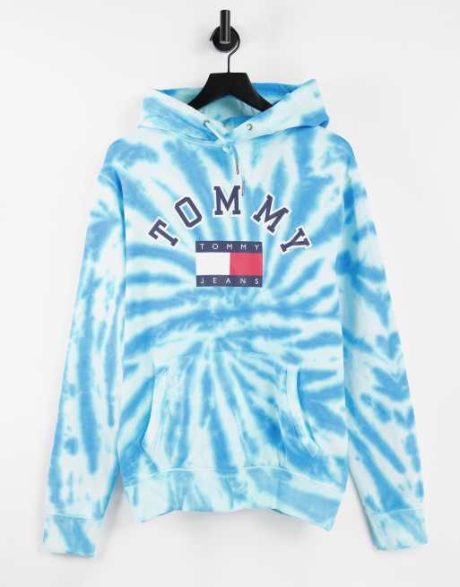 Tommy Jeans tie dye limted capsule central flag logo hoodie in blue
