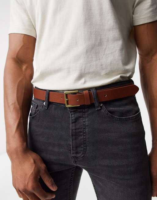 Topman belts clearance, Flat Strap Raw Bevel Edge Belt Brown Leather Belt Frye clearance