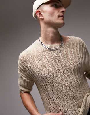 Topman ladder knit T shirt in stone ASOS