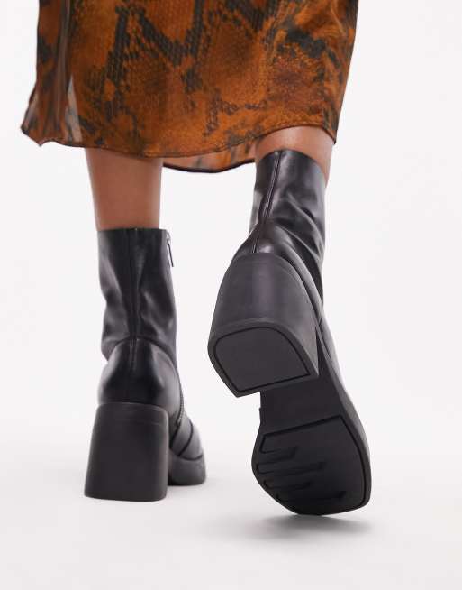 Topshop brown boots clearance, Topshop Tyra leather block heeled boot in black ASOS clearance
