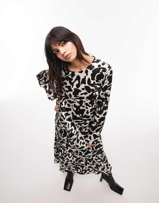 Topshop Lea premium printed long sleeve maxi dress in animal print