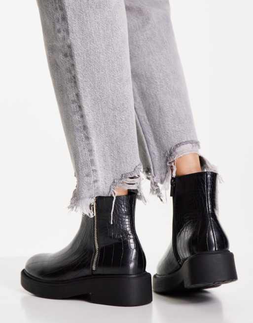 Topshop flat ankle boots clearance, Topshop Wide Fit Nicole block heel ankle boots in black clearance