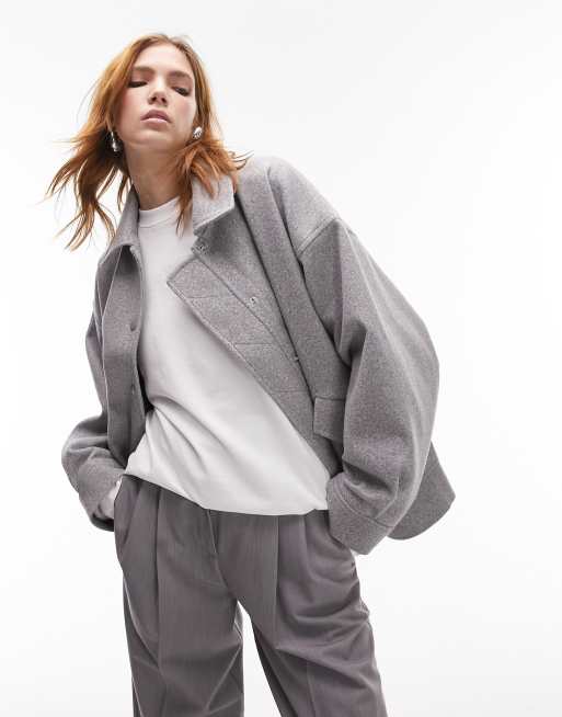 Topshop Petite oversized jacket in light gray