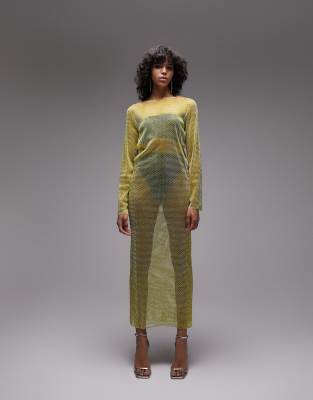 Topshop Diamante Long Sleeve Maxi Dress In Yellow ModeSens