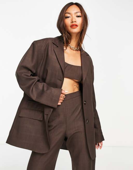 Topshop oversized strong shoulder blazer in dark stone part of a set