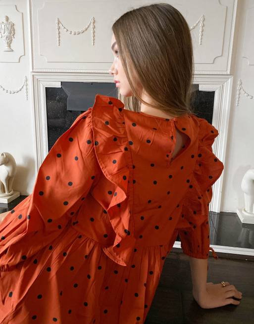 Topshop ruched shoulder poplin smock midi dress in oversized spot