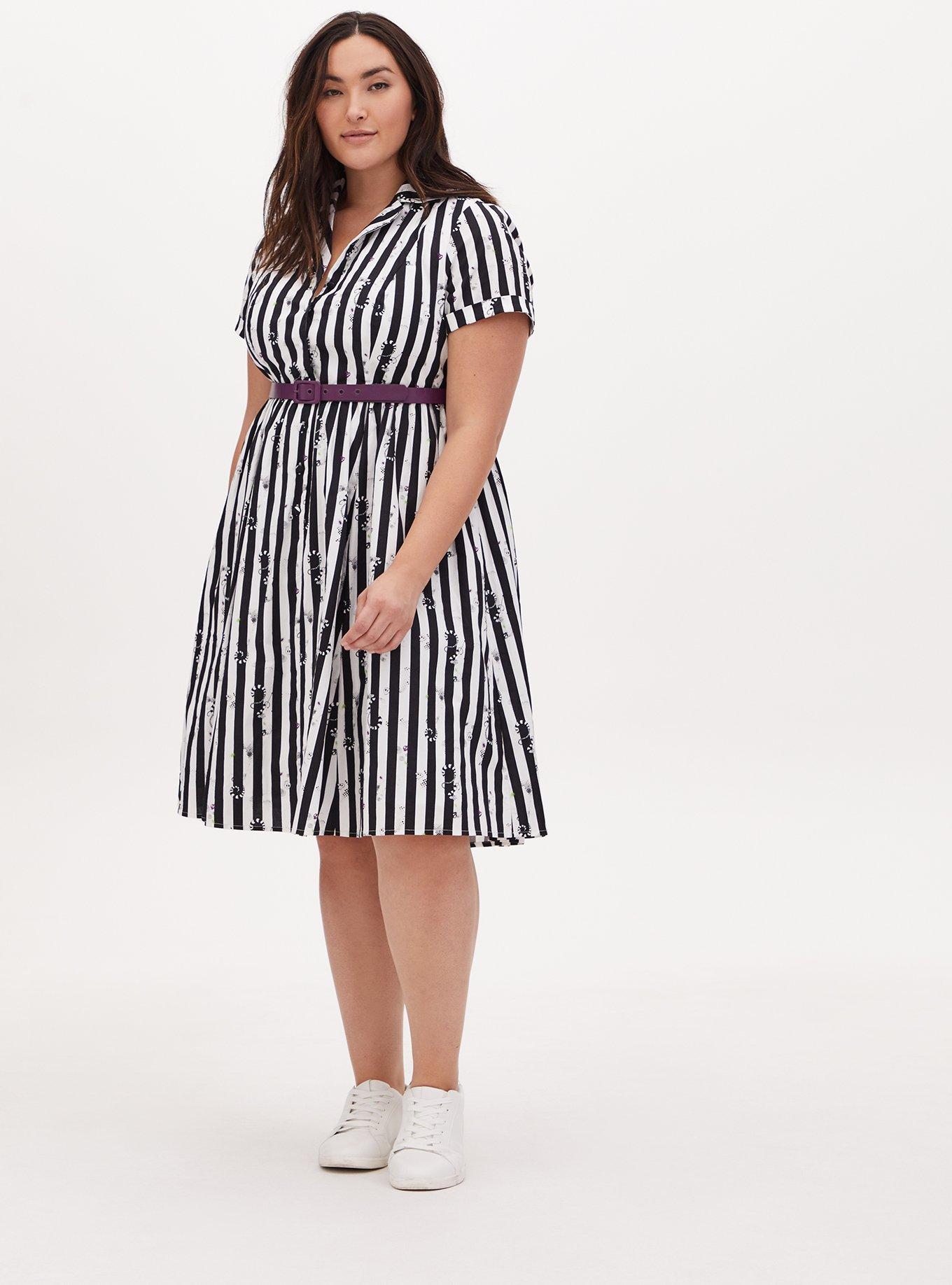 Plus Size Beetlejuice Snake Stripe Black White Belted Swing