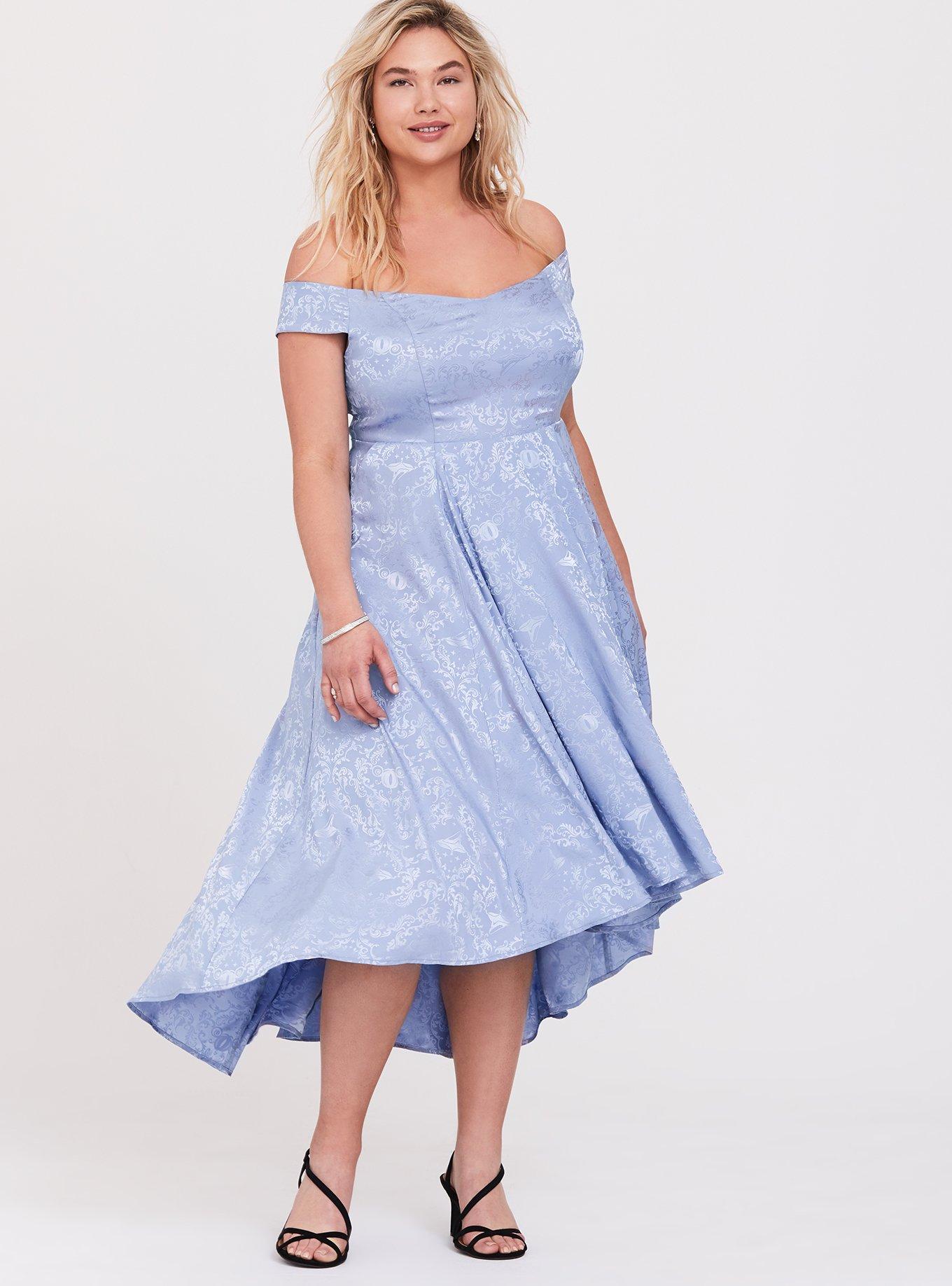 Plus Size Disney Cinderella Blue Off Shoulder Satin Hi Low Dress