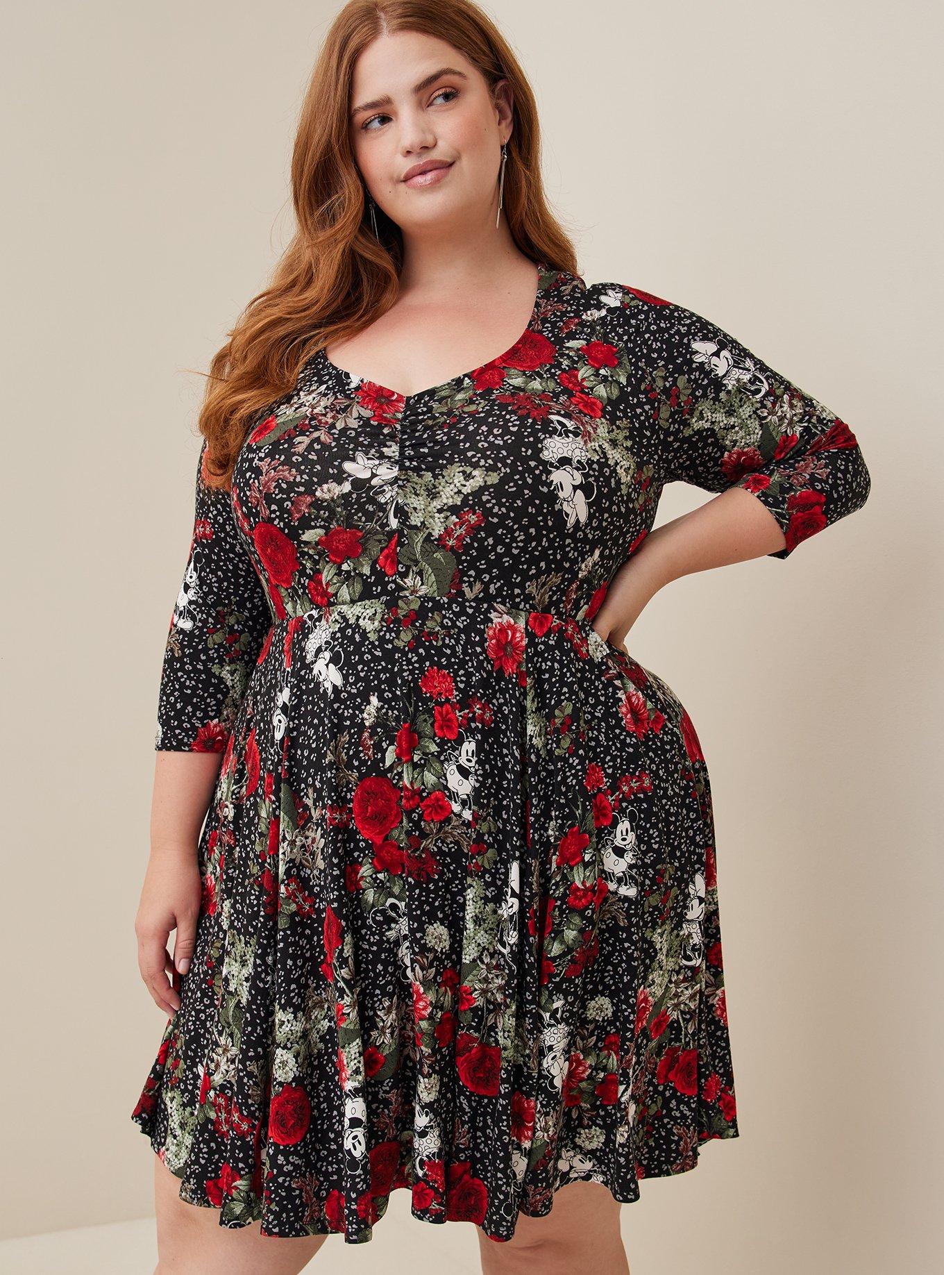 Plus Size Disney Mickey Floral Mini Supersoft Skater Dress Torrid