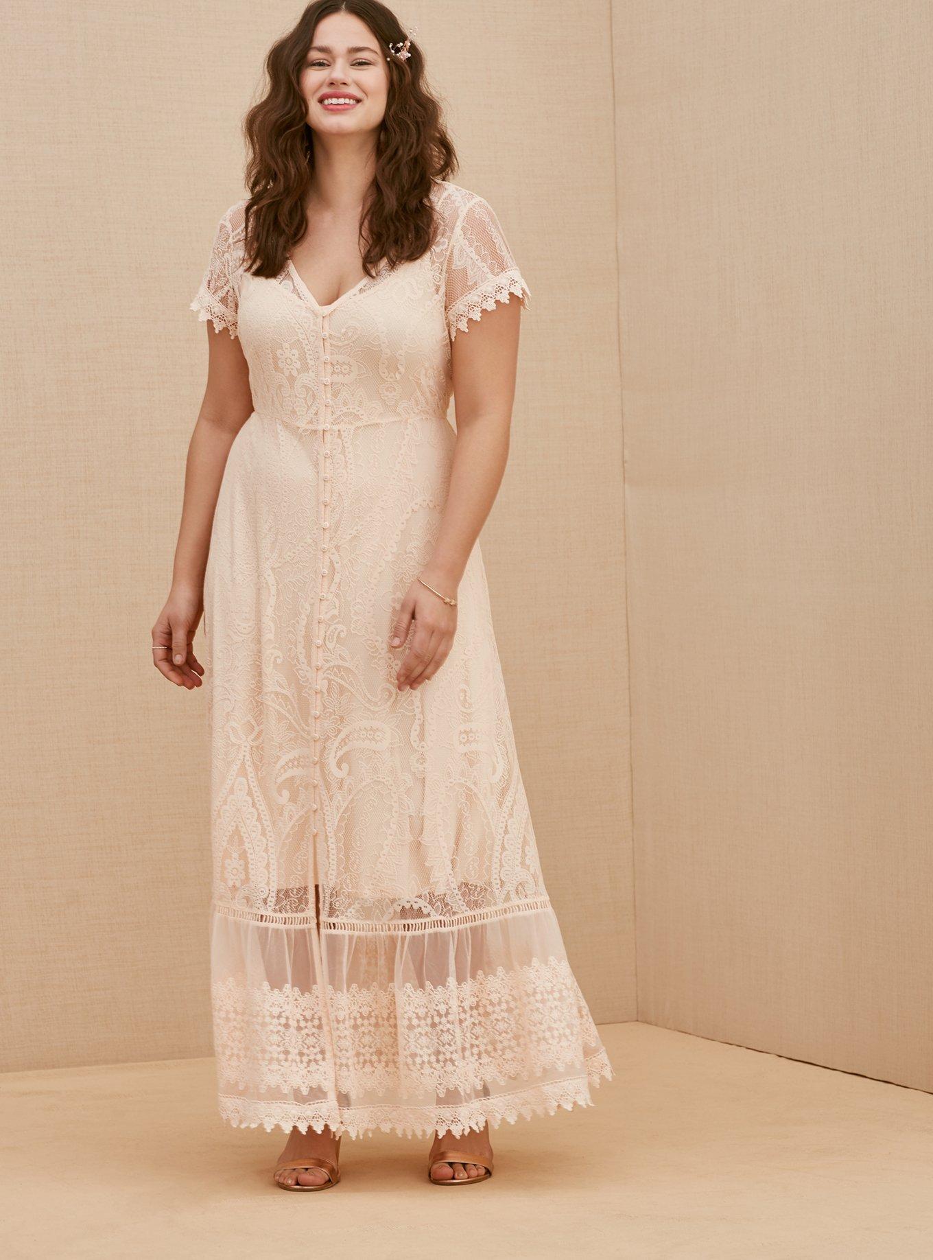 Torrid ivory lace maxi dress clearance, Plus Size Ivory Lace Short Sleeve Fit Flare Wedding Dress clearance