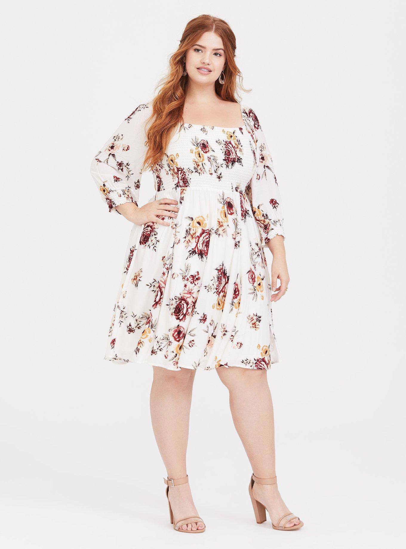 Plus Size Ivory Floral Chiffon Midi Dress Torrid