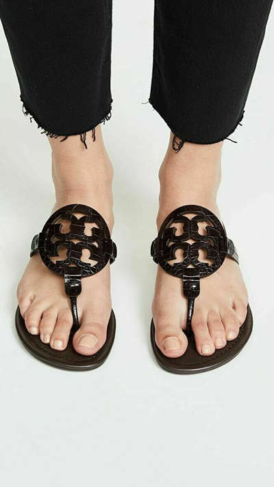 Tory burch miller sandals brown clearance, Pre owned Tory Burch Miller Croc Logo Leather Sandals Brown 6.5 7 clearance