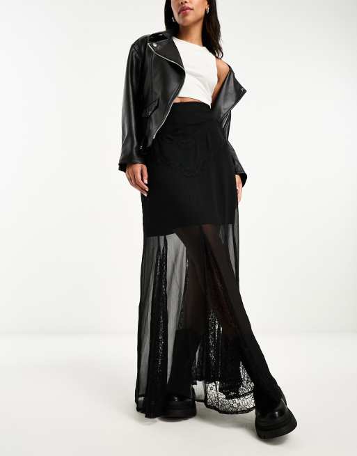 Miss Selfridge chiffon lace insert godet maxi skirt ASOS