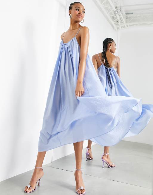 ASOS EDITION cami trapeze maxi dress with tie neck in powder blue