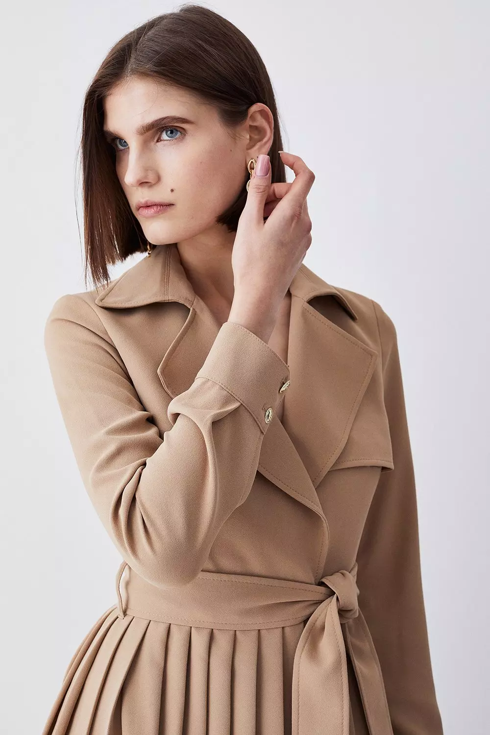Tailored Long Sleeve Woven Pleated Midi Trench Dress Karen Millen