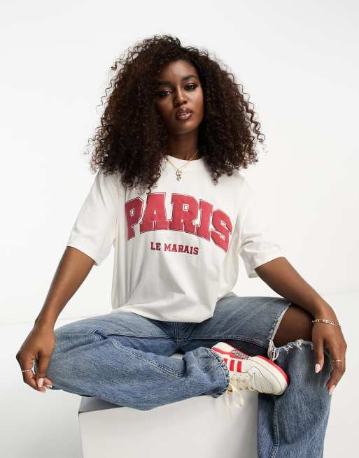ASOS DESIGN oversized t shirt with Paris puff print graphic in