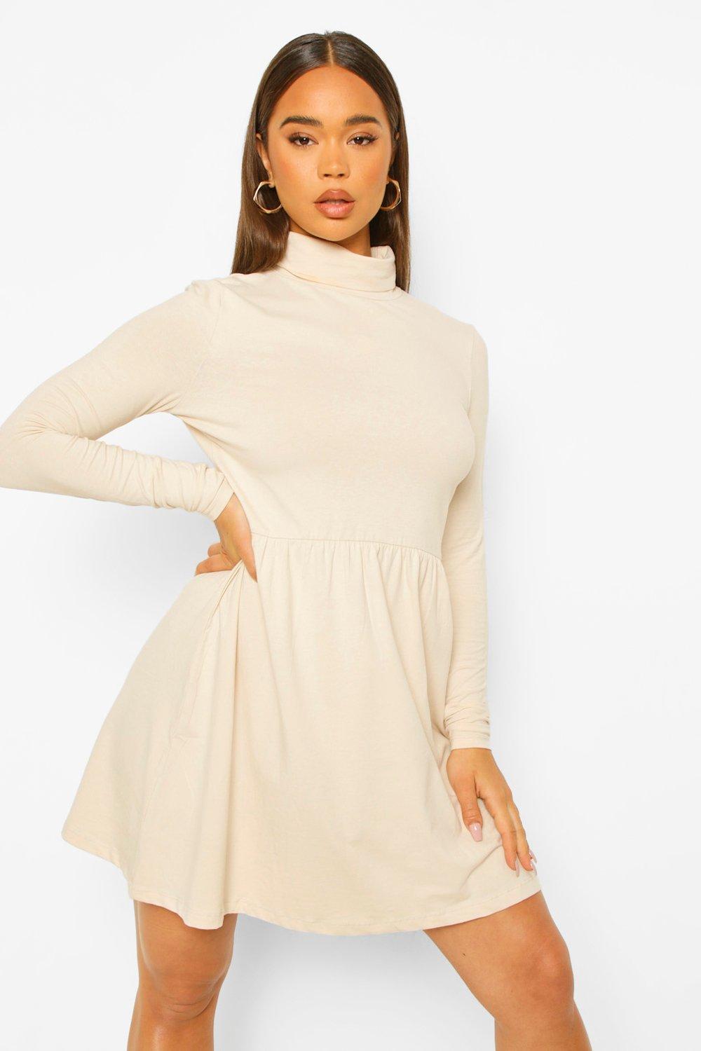 Turtle neck skater dress clearance, Turtleneck Long Sleeve Skater Dress boohoo clearance