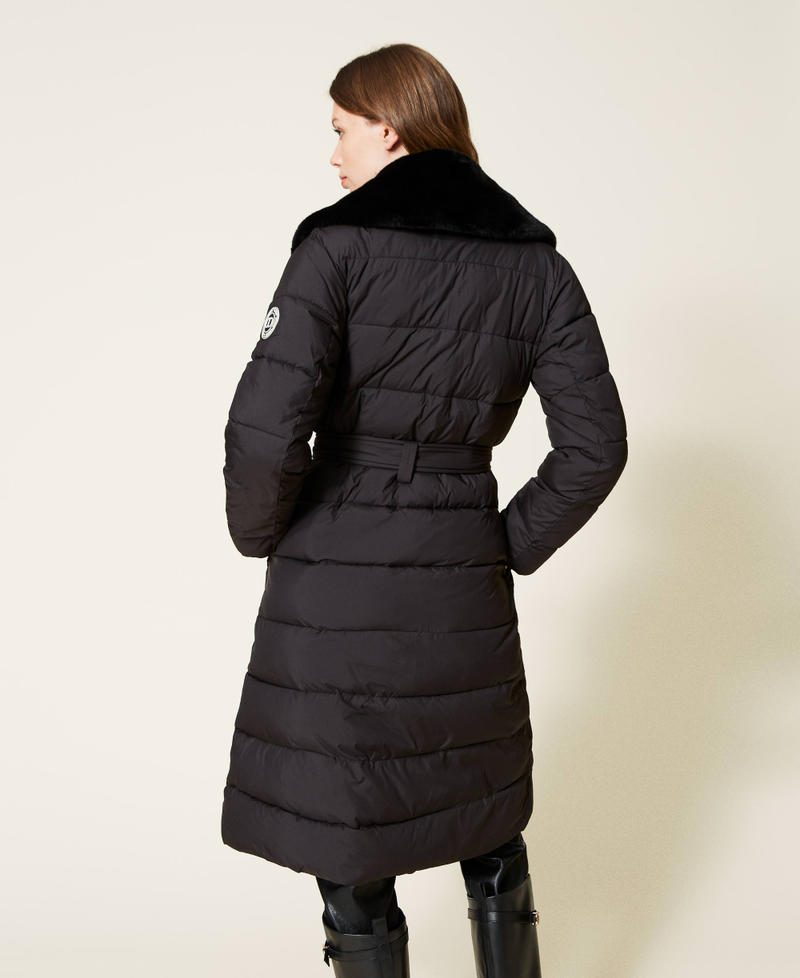 Piumino lungo opaco con faux fur Donna Nero TWINSET Milano