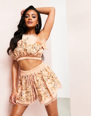 Two piece rose gold set clearance, ASOS LUXE two piece cotton set with embellishment in orange ASOS clearance