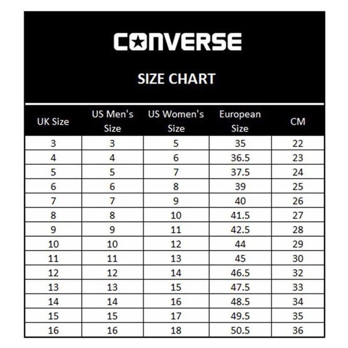 Converse Size Chart Cek Panduan Ukuran Converse Indonesia