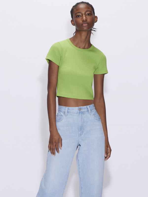 Uniqlo cropped crew neck t shirt clearance, Women s Ribbed Crew Neck Short Sleeve Cropped T Shirt Green XS clearance