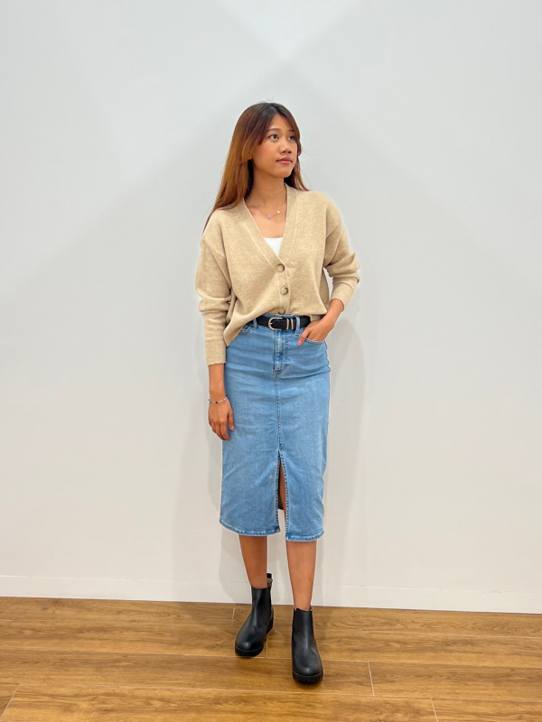 - uniqlo denim midi skirt