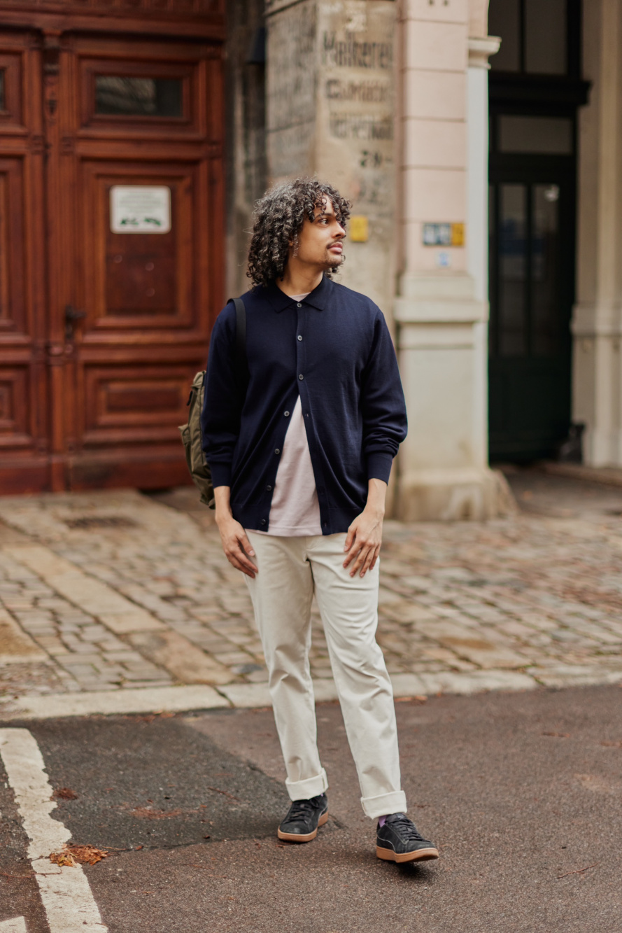 Check styling ideas for Extra Fine Merino Shirt Collar Cardigan
