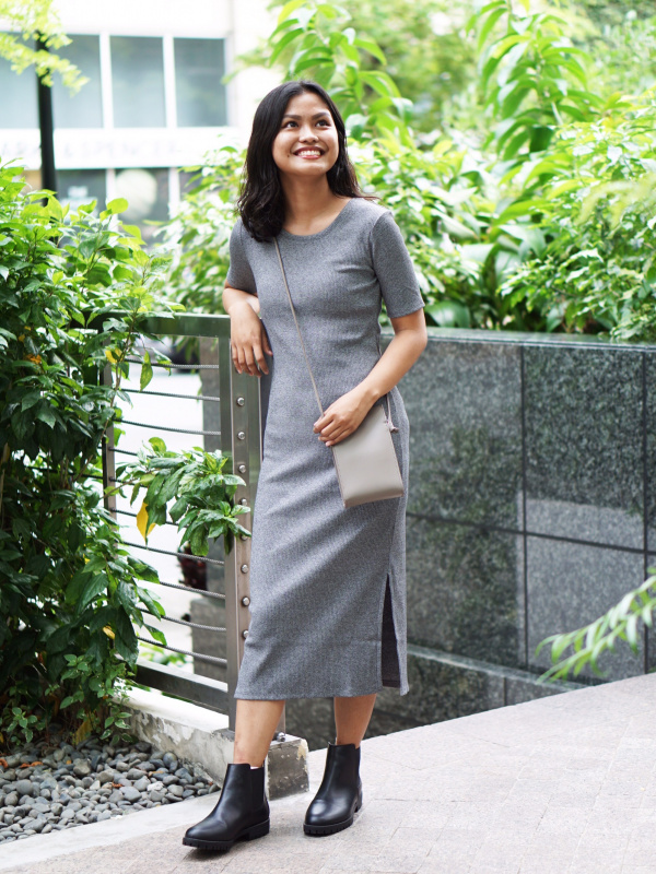 WOMEN S RIBBED SIDE SLIT SHORT SLEEVE LONG DRESS UNIQLO PH