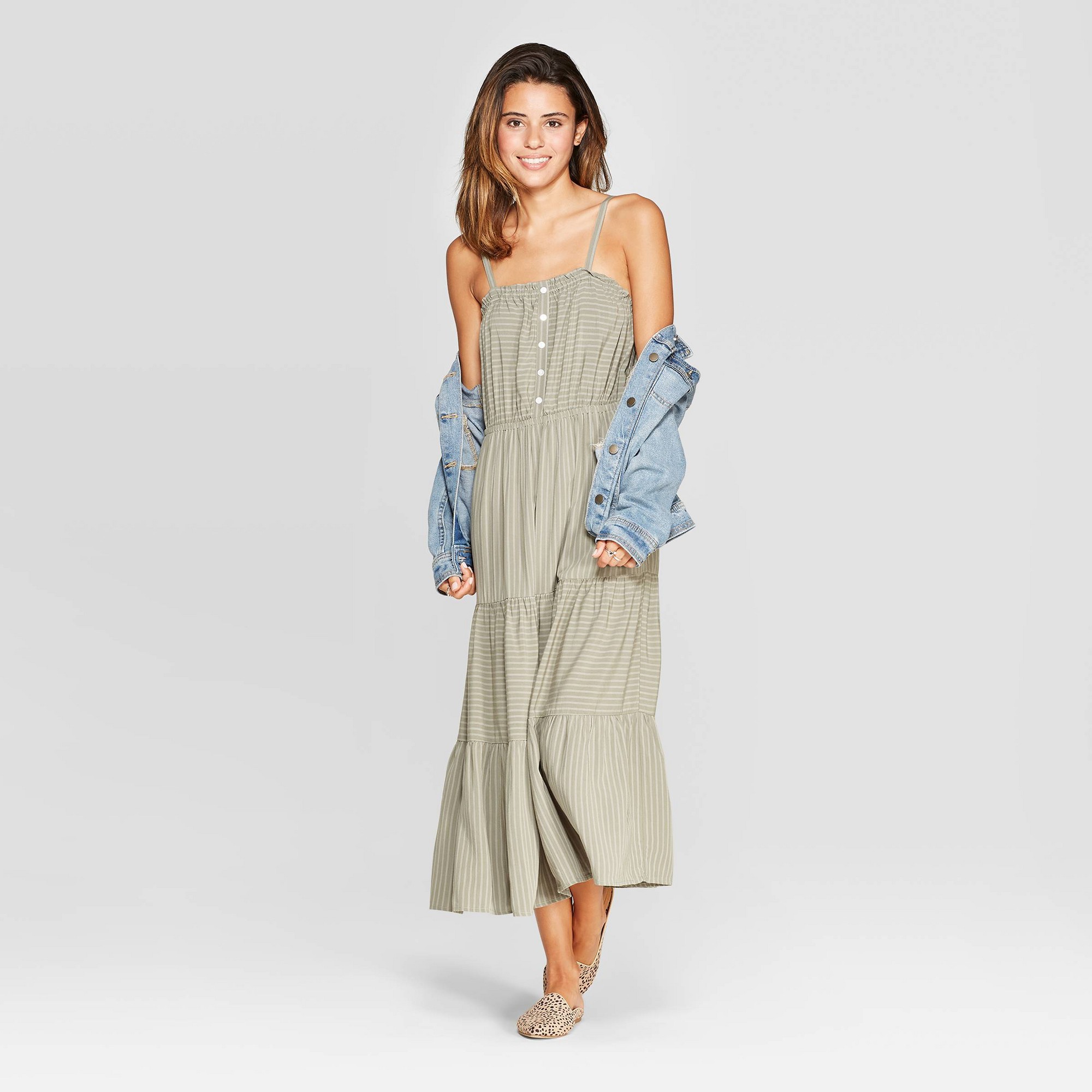 Universal thread striped dress clearance, Women s Striped Sleeveless Square Neck Button Front Tiered Midi clearance