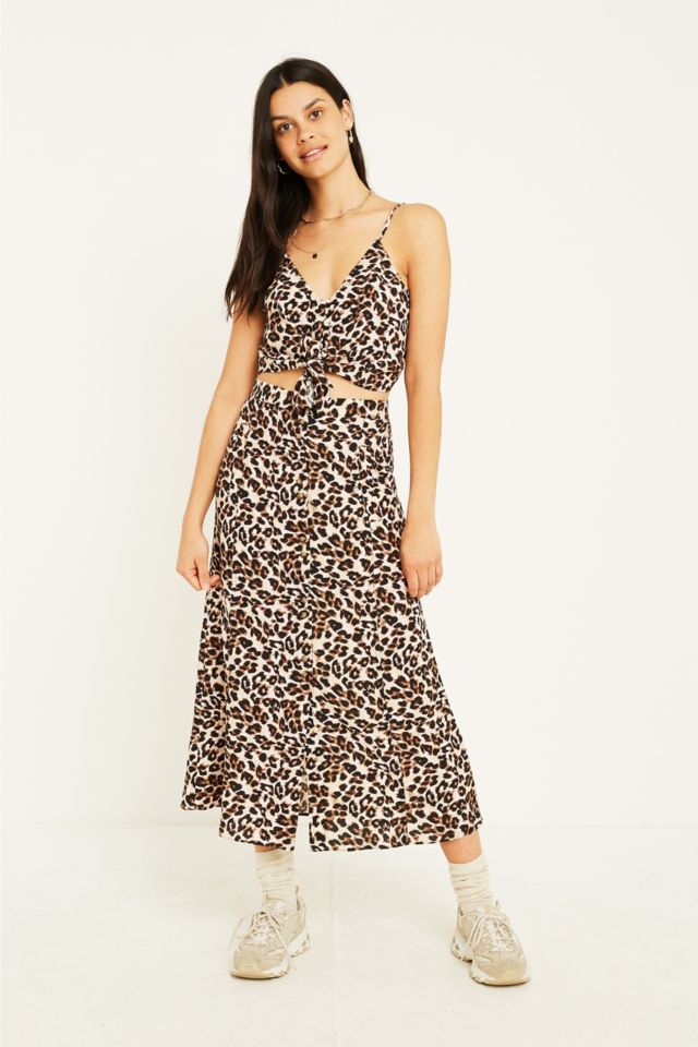 UO Ella Leopard Print Midi Skirt Urban Outfitters UK