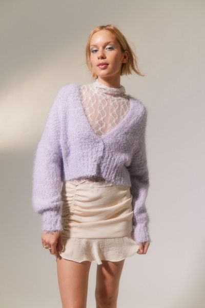 Uo fuzzy cardigan clearance, Urban Outfitters Uo Elise Cropped Fuzzy Cardigan In Light Grey clearance