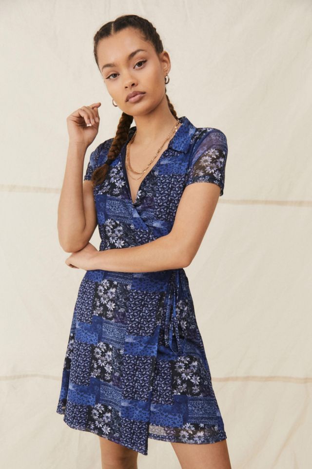 Urban outfitters flower dress clearance, UO Floral Patchwork Wrap Mini Dress Urban Outfitters clearance