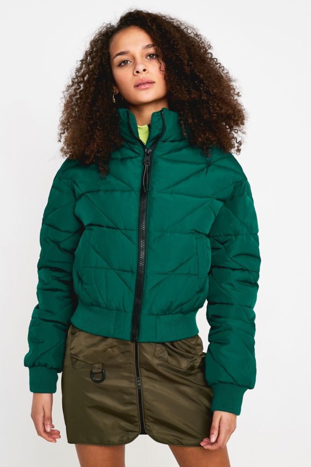 Urban outfitters green coat clearance, UO Green Quilted Crop Puffer Jacket Urban Outfitters UK clearance