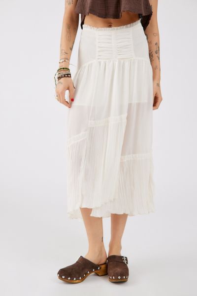UO Ecru Textured Asymmetric Midi Skirt Urban Outfitters UK