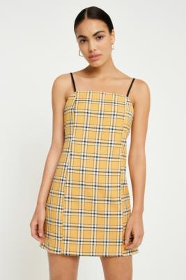 UO Bright Yellow Checked Slip Dress Urban Outfitters UK