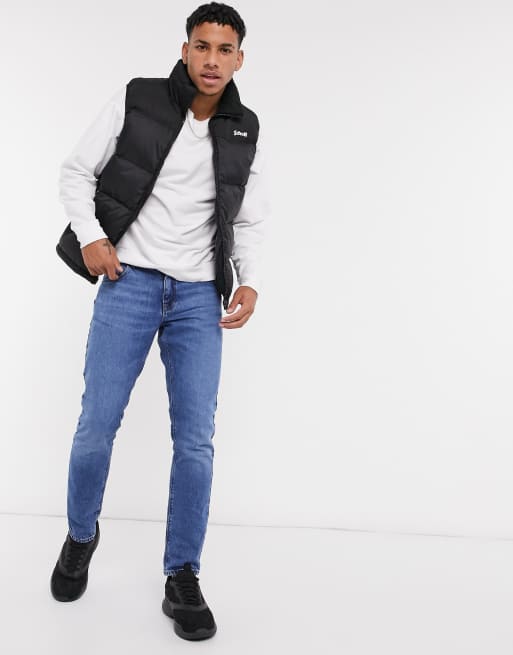 Schott Utah embroid logo concealed hood puffer jacket in black ASOS