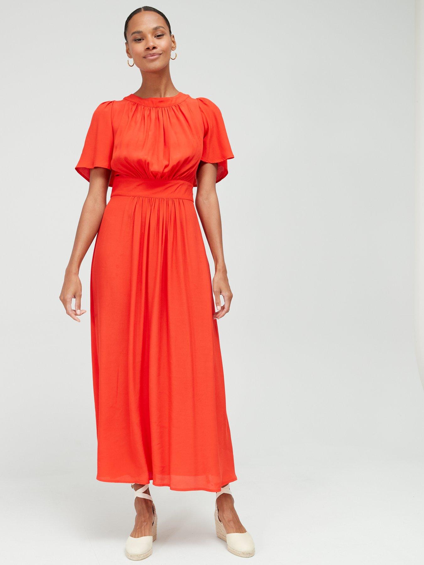 V by Very Angel Sleeve Midi Dress Red Very Ireland