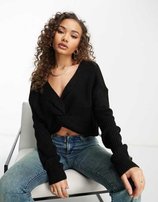 NaaNaa twist front sweater in black ASOS