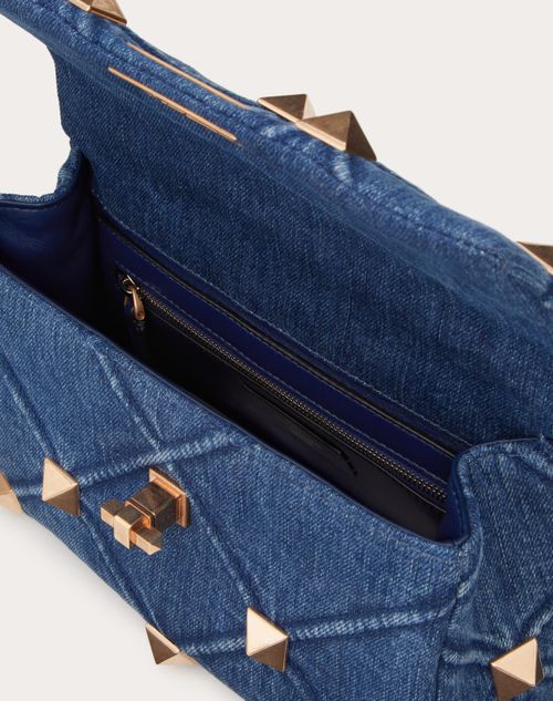 Small Roman Stud The Handle Bag In Denim for Woman in Denim