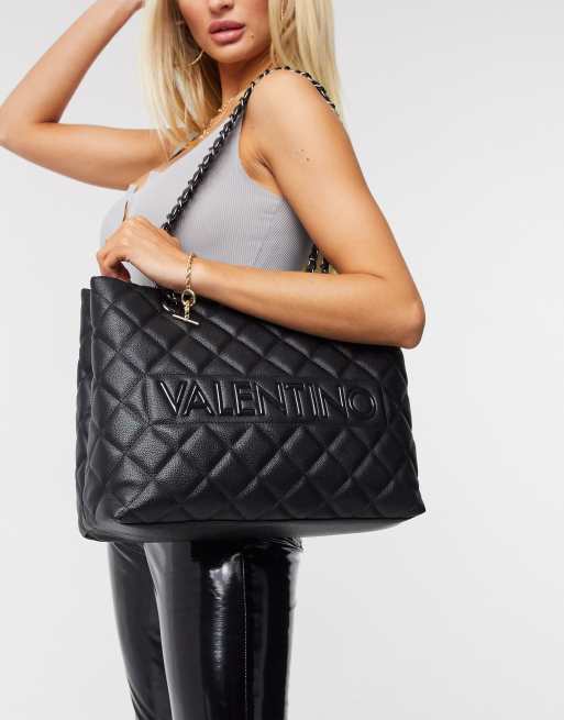 Valentino Ada quilted embossed tote bag with chain strap in black