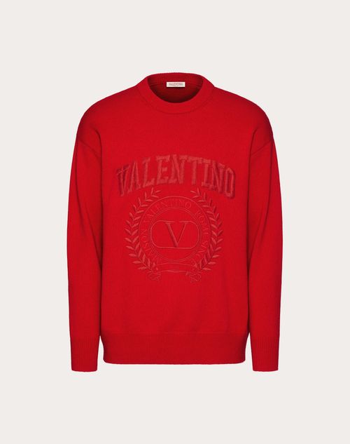 Crewneck Sweater In Wool With Maison Valentino Embroidery for Man