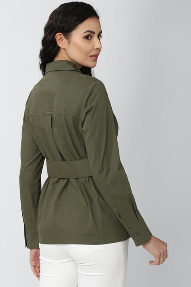 Buy VAN HEUSEN Olive Solid Cotton Regular Fit Women s Jacket