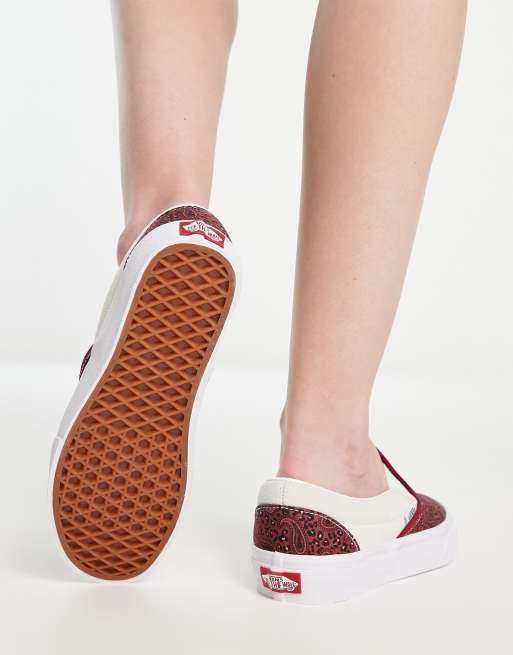 Vans Lowland Sneakers in pelle bianche con dettagli rossi
