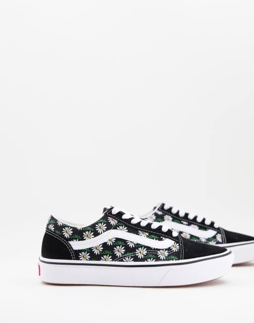 Vans flower design clearance, Vans Old Skool trainers with flower print in black clearance